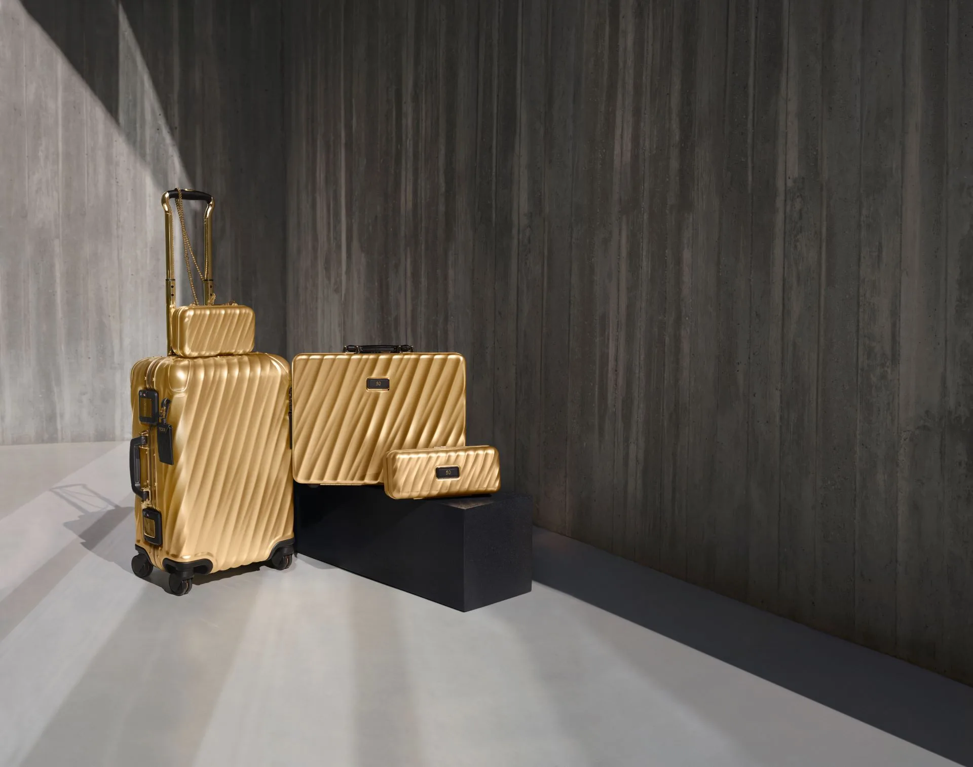 It’s time to hit the road, folks, because TUMI has released a numbered, limited-edition capsule collection of gilded cases and accessories in celebration of its golden anniversary.