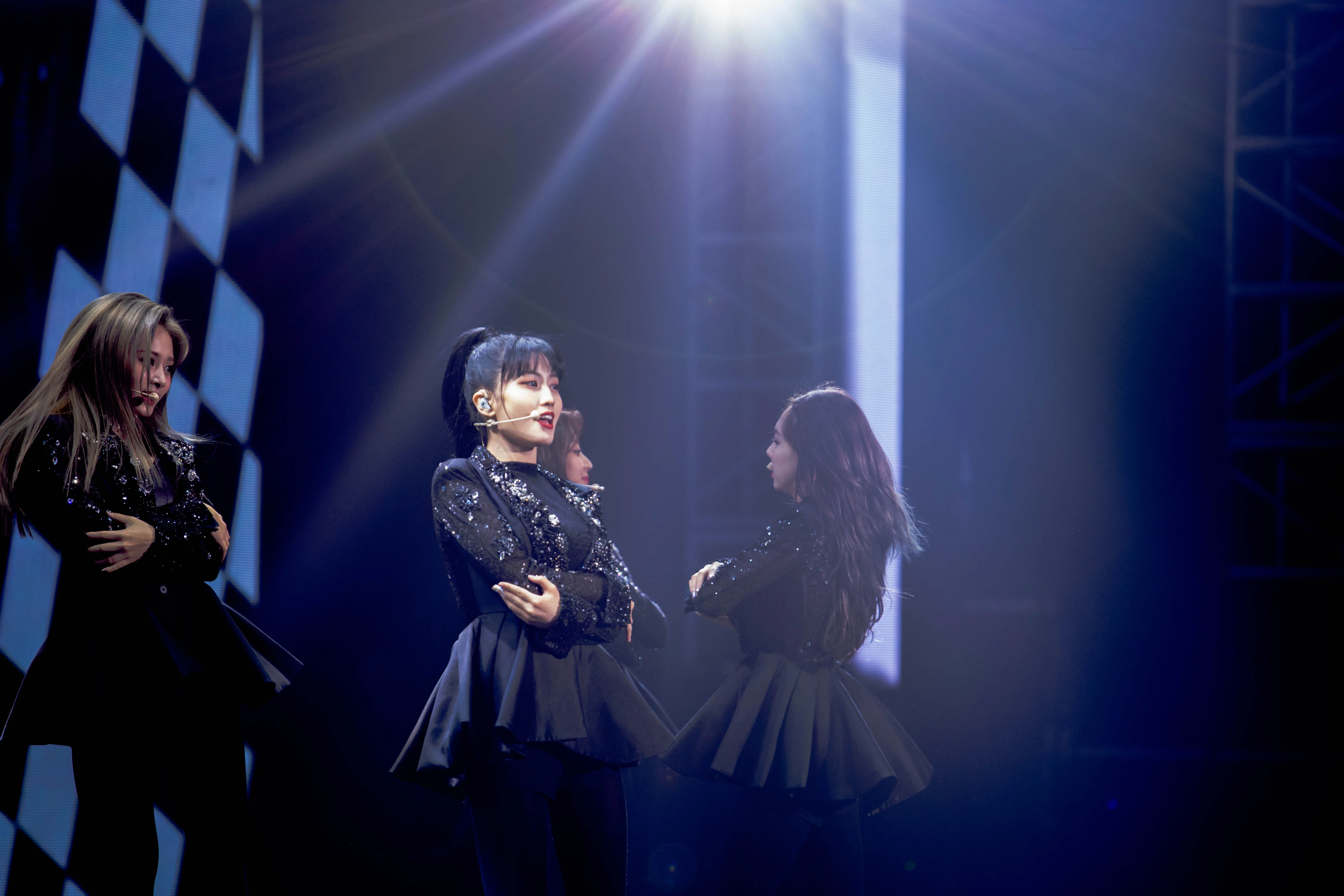 It wasn’t long before the girls returned with their jackets removed, performing a cover of “I Want You Back” by The Jackson 5. With a cane in hand as a dance prop, the performance was a blend of sexy and cute. Jihyo also hit some impressively high notes here. The girls then performed a marching band-esque remix of “Dance The Night Away” before they were lowered down the stage for their next wardrobe change.