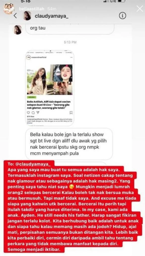 Despite their separation, it’s good to see that both Bella Astillah and Aliff Aziz are still maintaining a close friendship with each other.