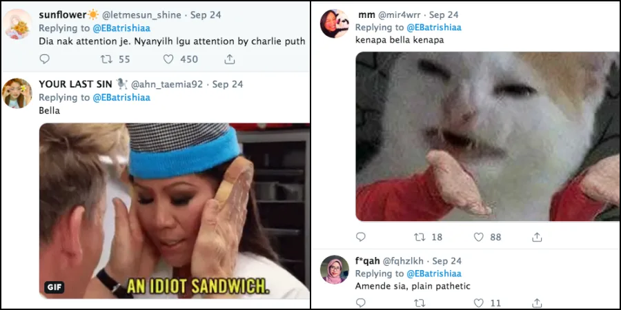 Recently, a twitter user known as @EBatrishiaa shared a snippet of Bella’s Instagram live session online. In the 56-seconds clip, the “Cinta Belum Tamat Tempoh” star and also Aliff were seen singing “Almost Is Never Enough” by Ariana Grande and Nathan Sykes together.
