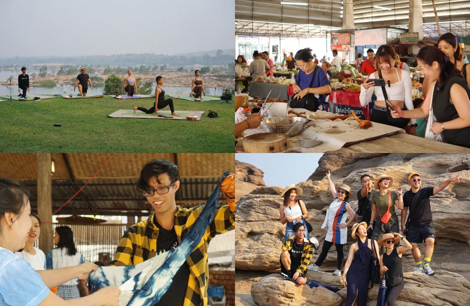 Fun fact: Ubon Ratchathani is famous for its cotton weaving, so of course, we had to learn where all the clothes and decorations seen around the resort came from. We were introduced to the art of cotton making at the Tohsang Cotton Village, where the staff demonstrated the process of cotton-picking. After our fun tie-dye session, we left for our final activity of the day and checked out of Sam Phan Bok.