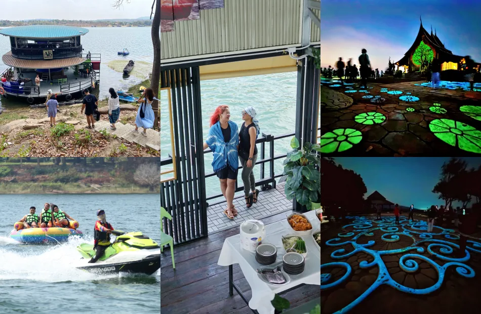 Lunchtime was probably the highlight of Day 3 for us. Our dear guides took us for a ride on a VIP Raft, where we got to enjoy some yummy food and a magnificent view of the lake. A good meal on a raft is not complete without some music, and thank goodness the venue had a karaoke set, so some of us got to sing our hearts out during the entire ride. We ended the day by visiting the Wat Sirindhorn Wararam (a.k.a the Glow in the Dark Temple) and it was magical.