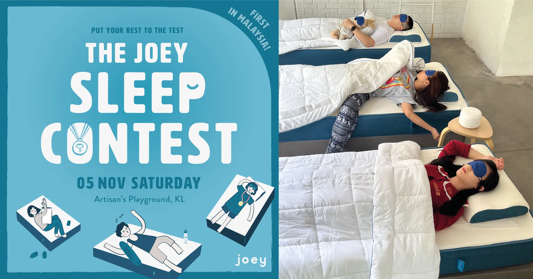 Speaking of quality sleep, homegrown brand Joey Mattress is organising The Joey Sleep Contest on 5th November 2022 at Artisan’s Playground, Kuala Lumpur. All you have to do is sleep for a duration and you could walk away with an amazing prize. The rules are simple. The longer you sleep, the bigger your prize: