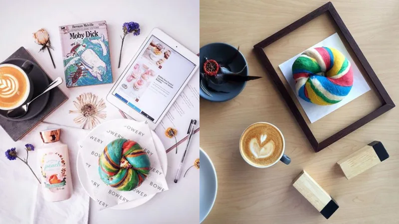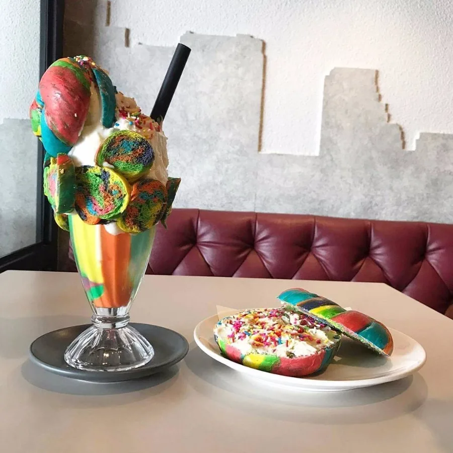 Ooh, such pretty colours! Your eyes are not playing a trick on you. The Rainbow Bagel stands out easily with its psychedelic swirls of fun colours. It actually tastes like a normal egg bagel but infused with funky food toppings before baking it. You will also find a puffy-thick layer of cream cheese of “fun-fetti” frosting inside. We thank the unicorn gods for creating this fabulous miracle.