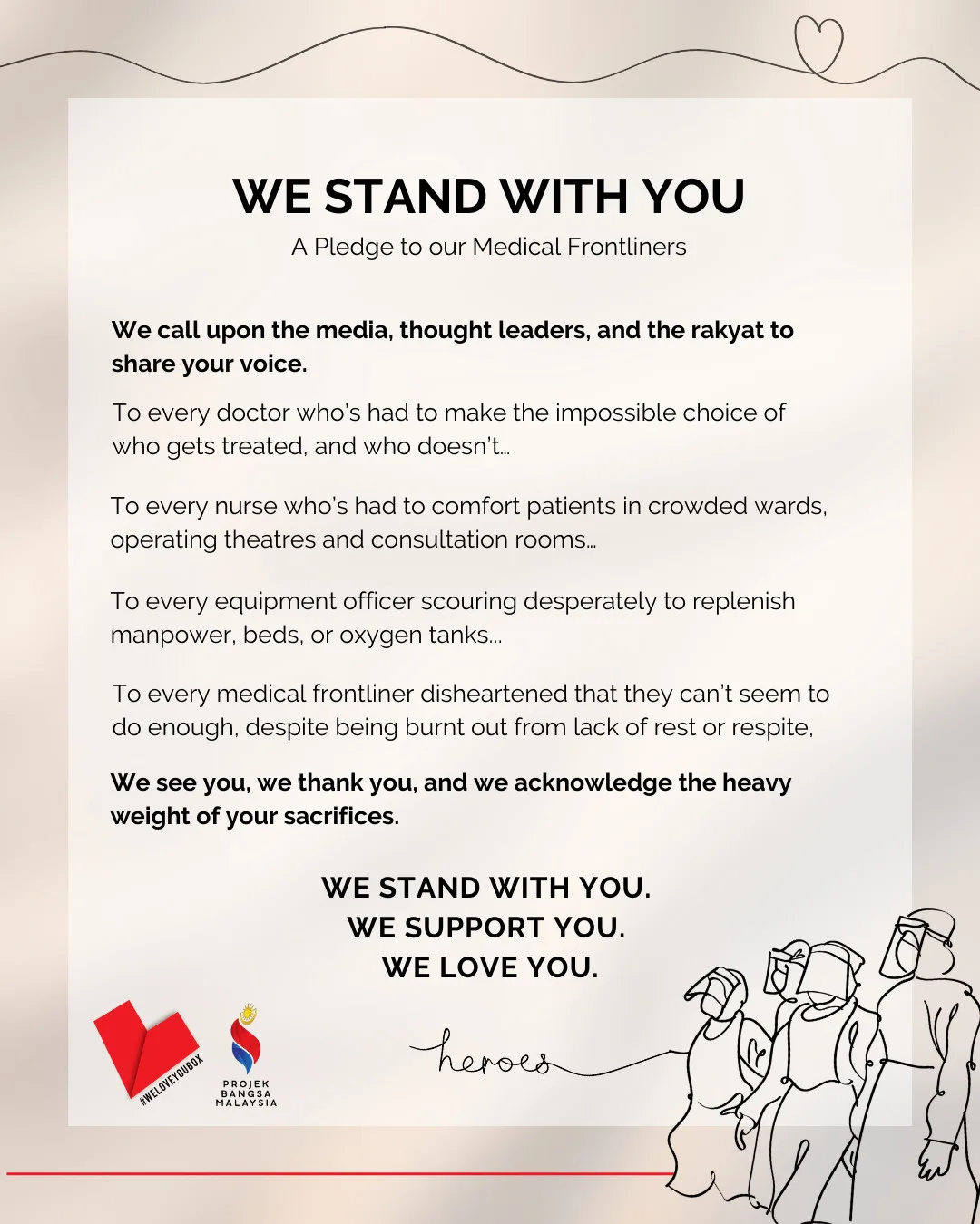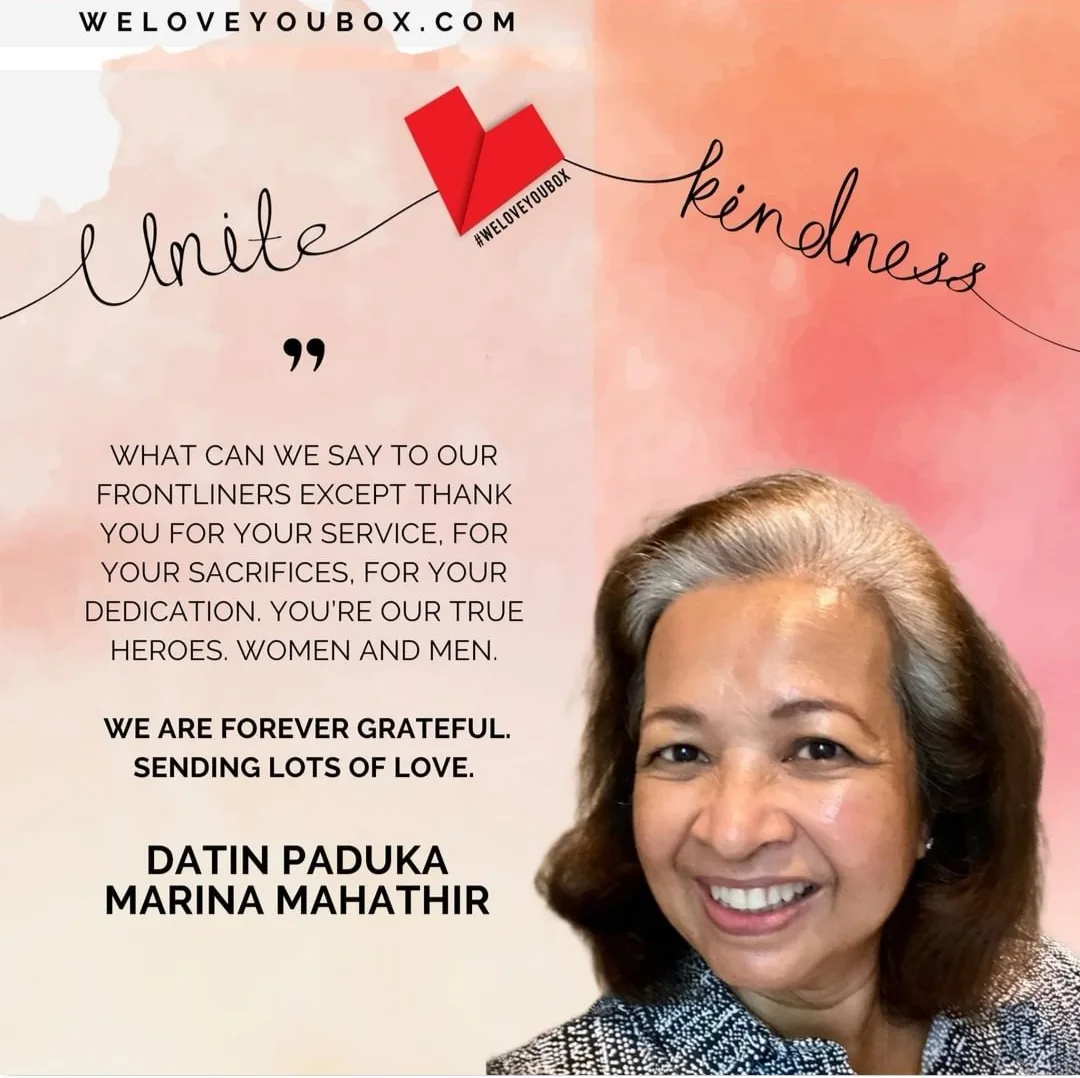 With many messages pouring in, just a few weeks into the launch, the one that stood out the most was from Datin Paduka Marina Mahathir who hailed our medical front liners as true heroes in her heartfelt note: “What can we say to our front liners except thank you for your service, for your sacrifices, for your dedication. You’re our true heroes, women and men, and we are forever grateful. Sending lots of love, Marina.”