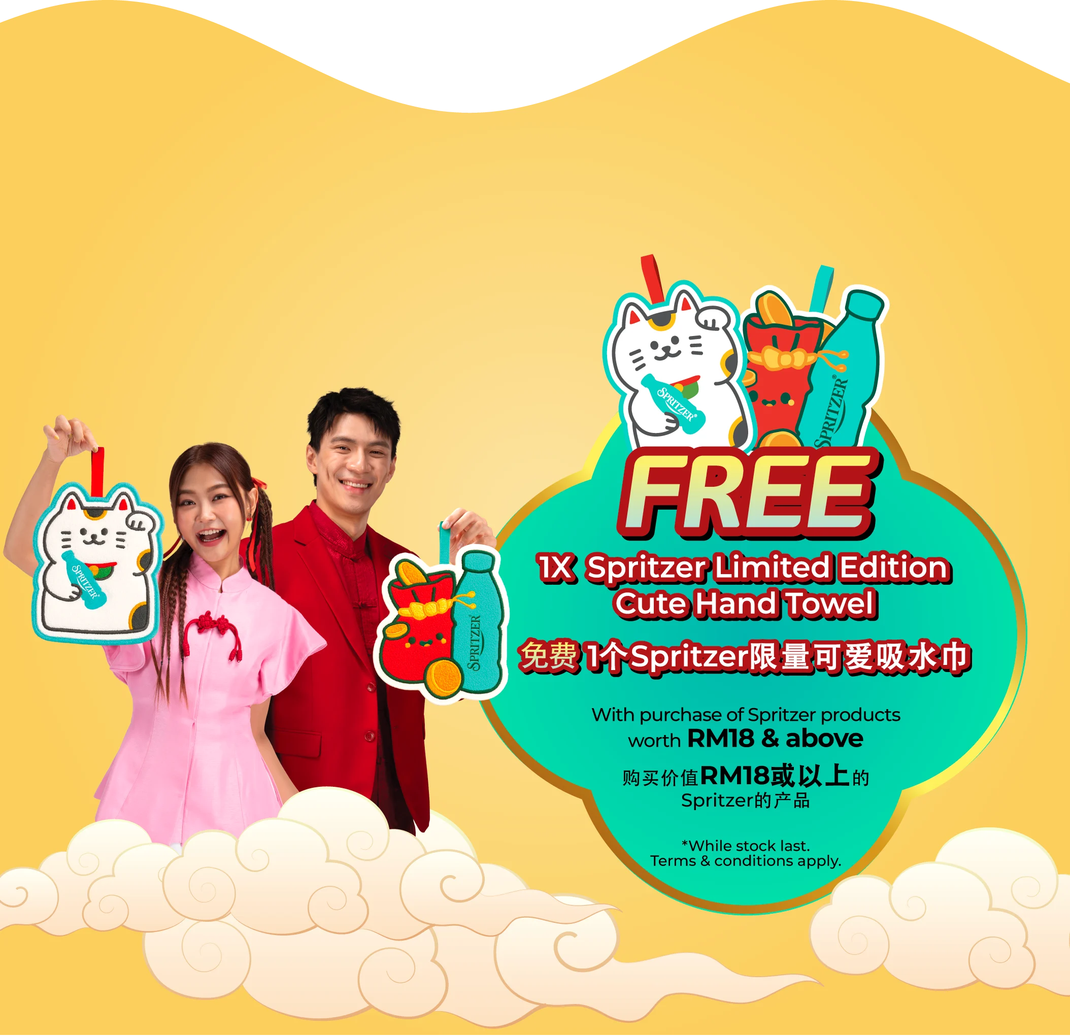 - Purchase RM18 worth of Spritzer products and receive a limited-edition Spritzer Hand Towel;