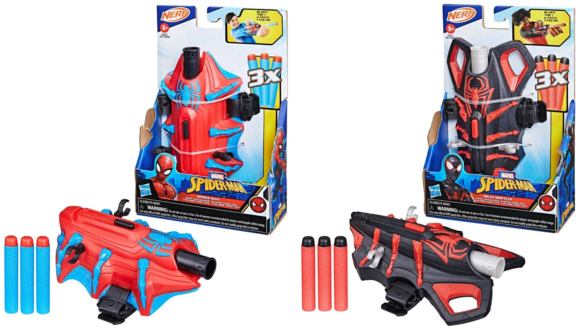 Unleash your inner hero (or villain) with the Venom Strike Gauntlet! Pull back the lever, press the button, and fire foam darts for thrilling, web-slinging action. Complete with a movable mouth feature and dart storage, this open-box blaster brings the excitement of Spider-Man battles straight into your hands.