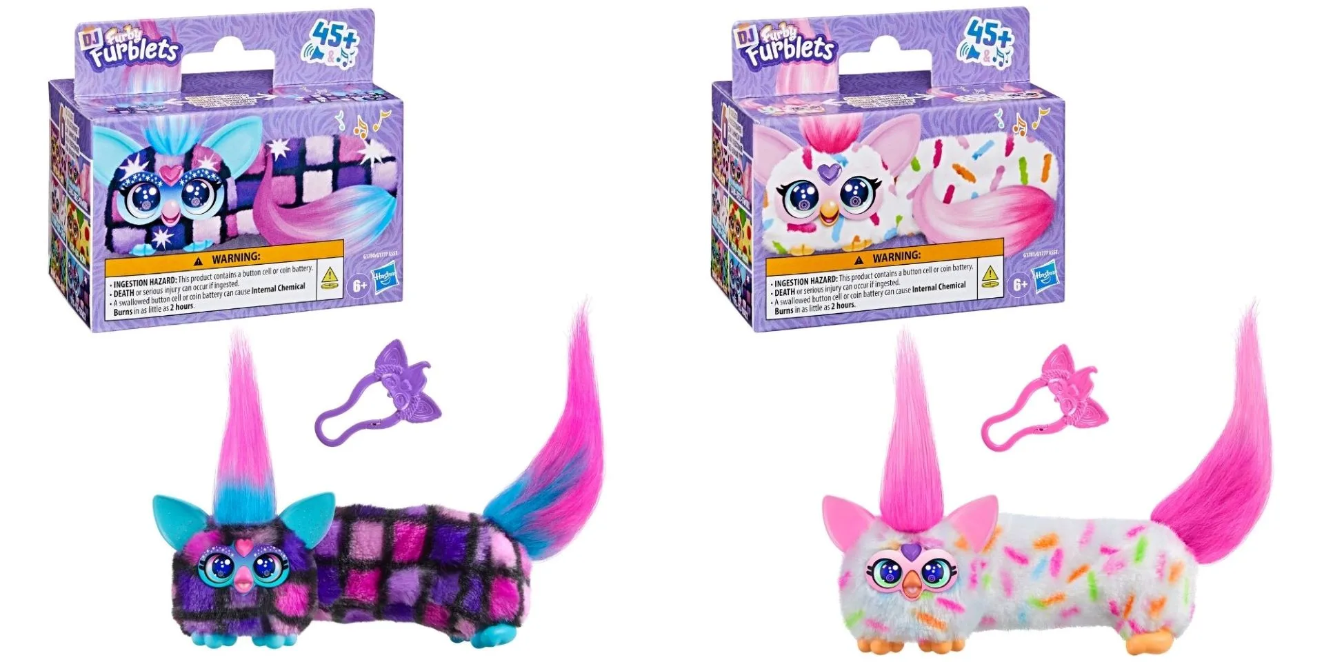 Turn up the volume on fun with the DJ Furblets—pocket-sized party pals that harmonise, groove, and sing together! Featuring six collectible designs like Discooo, Swirlsss, and Cookieee, each Furblet comes with playful sound effects and tufts of soft fur. Clip them onto your bag or let them jam with your Furby XTRA for a full musical experience.