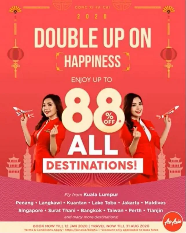 Fear not, as Malaysia’s premier low cost airline AirAsia is set to buck the trend by offering up to 88% off on all destination this Chinese New Year.