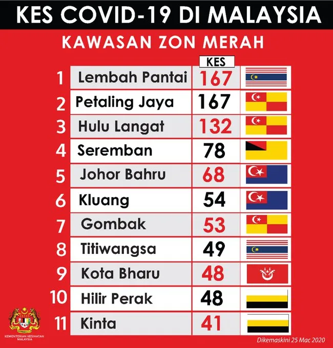 This morning, the Ministry Of Health (MoH) also posted an updated on the Covid-19 red zones. From 6 locations earlier this week, that number has since increase to 11 areas (those living here are advised to take extra precaution).
