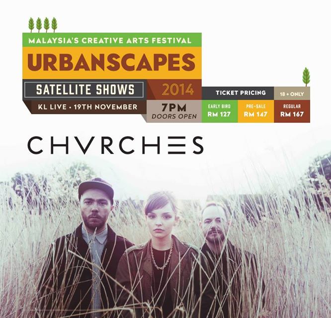 - Scottish synthpop band Chvrches (“Recover”, “Lies”), will perform at 7 pm, 19th Nov at KL Live. The trio, whose track “The Mother We Share” was featured in the opening video for the 2014 Commonwealth Games Opening Ceremony in Glasgow, Scotland this year.