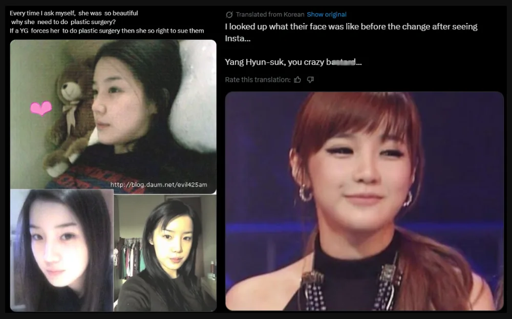 This context has resurfaced as images of Park Bom from her early days began circulating online. One viral post, which has now reached over four million views, compared her current visuals to older photos, sparking renewed debate about the extent of her cosmetic enhancements. Reactions were divided, as while some expressed shock, others defended the singer, arguing that such comparisons were invasive and irrelevant to her artistry.