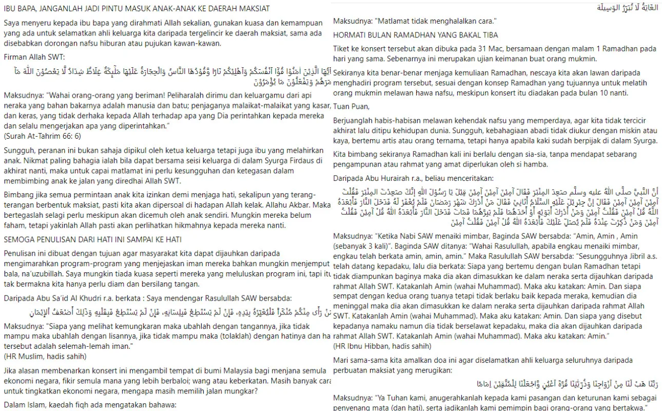 In regard to this, Asma’ is urging parents to not allow their child to attend the concert. According to her, “Use the power and ability that are bestowed upon you (as parents) to save your family members from getting engaged in activities that are filled with vices. Else, you will be questioned by God during the hereafter for allowing your kids to get involved in immoral activities. Be stern with them when it’s necessary.”