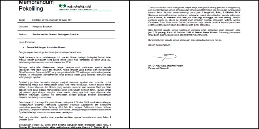 The memo further added that all of Utusan and Kosmo! workers should clear their desks and take all their personal belongings. They were also urged to return back company’s property including access cards and office keys by 1pm.