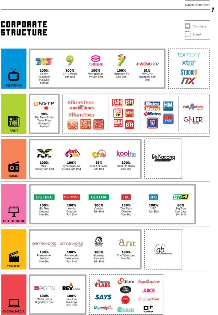 As mentioned earlier, Aurora Mulia Sdn Bhd is one of mega media company Media Prima’s biggest stakeholders. Media Prima is home to big titles such as Harian Metro, Berita Harian and New Straits Time. In addition, the company also operates TV and radio stations like TV3, 8tv, ntv7, Hot fm and Fly fm.