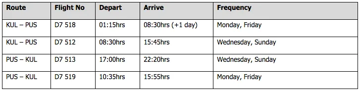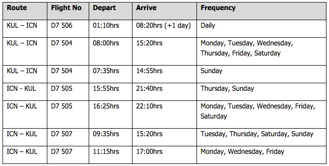 AirAsia X operates 14 times weekly flights from Kuala Lumpur to Seoul, South Korea.