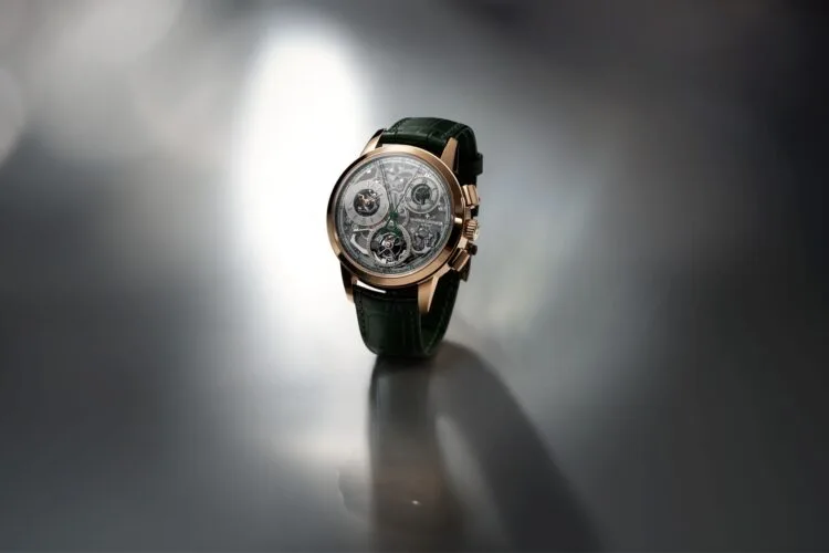 The watch unites three of the most prestigious horological complications: a minute repeater, a split-seconds chronograph, and a tourbillon regulator with a spherical hairspring.