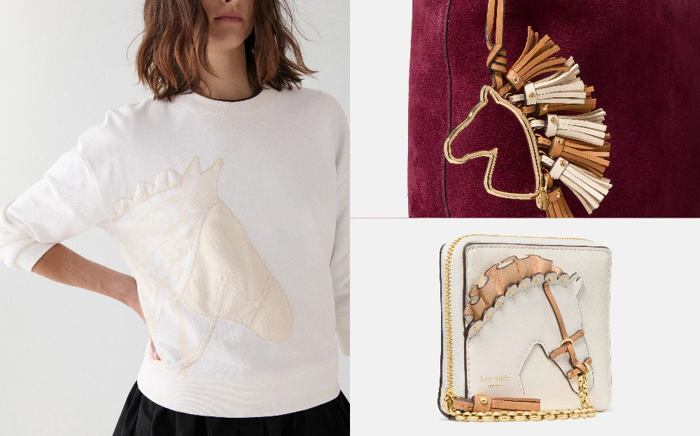 Kate Spade unveils its Lunar New Year collection, where radiant gold horse motifs add a touch of good fortune to the season. Its collection goes big on minimalism and comfort – a cosy white sweatshirt stamped with a horse design peeking out on the front. Top off your outfit with a compact leather wallet in a cashew milk shade with a matching horse design to store your red packets. In peak bag charm season, add a little horse charm to your bag for “mane character” energy.