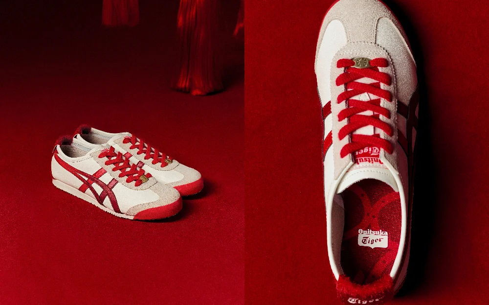 Onitsuka Tiger celebrates the season with a festive take on its cult classic sneaker, the iconic Mexico 66. The limited-edition model features horse-inspired details, including a faux-fur heel that mimics the texture of a horse’s mane. Cream and red tones are punctuated by gold accents for a subtle and cheerful lift. The sockliner and hardware decorating the shoelaces are adorned with graphics resembling horseshoes, symbolising good fortune throughout the year.