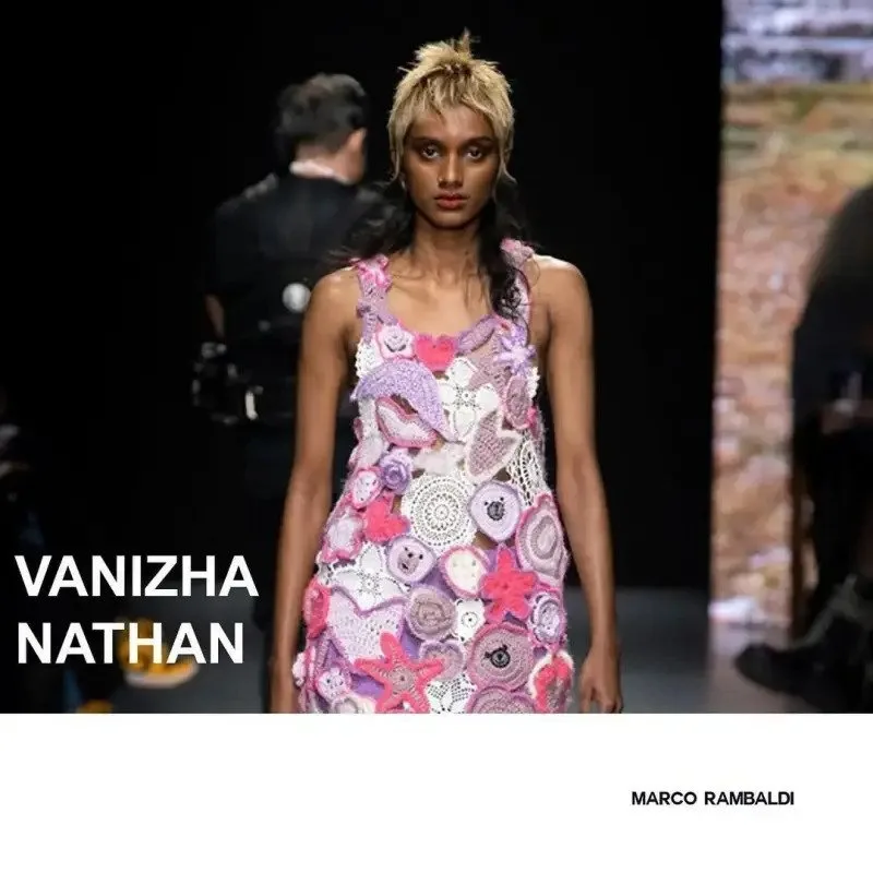 Vanizha was also seen in a very colourful piece from Marco Rambaldi. The brand offers a total look, with a focus on knitwear and outerwear, including dresses, tops, shirts, skirts, trousers and t-shirts. The designer also added leather accessories, such as bags and shoes, in recent seasons.