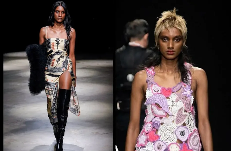 From the video above, you can see Vanizha strut down Milan Fashion Week in ‘Look 34‘, dressed in an ACT N°1 dress with a long slit and knee-high black boots. The brand that Vanizha modelled for in the video is diverse ranging from flowy shirts and long-trained dresses splashed with flowers and landscape prints which is a nod to designer’s Luca Lin’s Chinese roots.