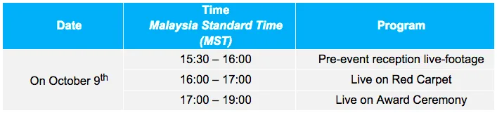 The main awards show is scheduled to start at 5pm Malaysia Standard Time (MST) but V app provides global users with an exclusive look before, during and after the show. Celebrities’ red carpet arrivals, behind-the-scene action and complete award ceremony will be live-streamed globally.