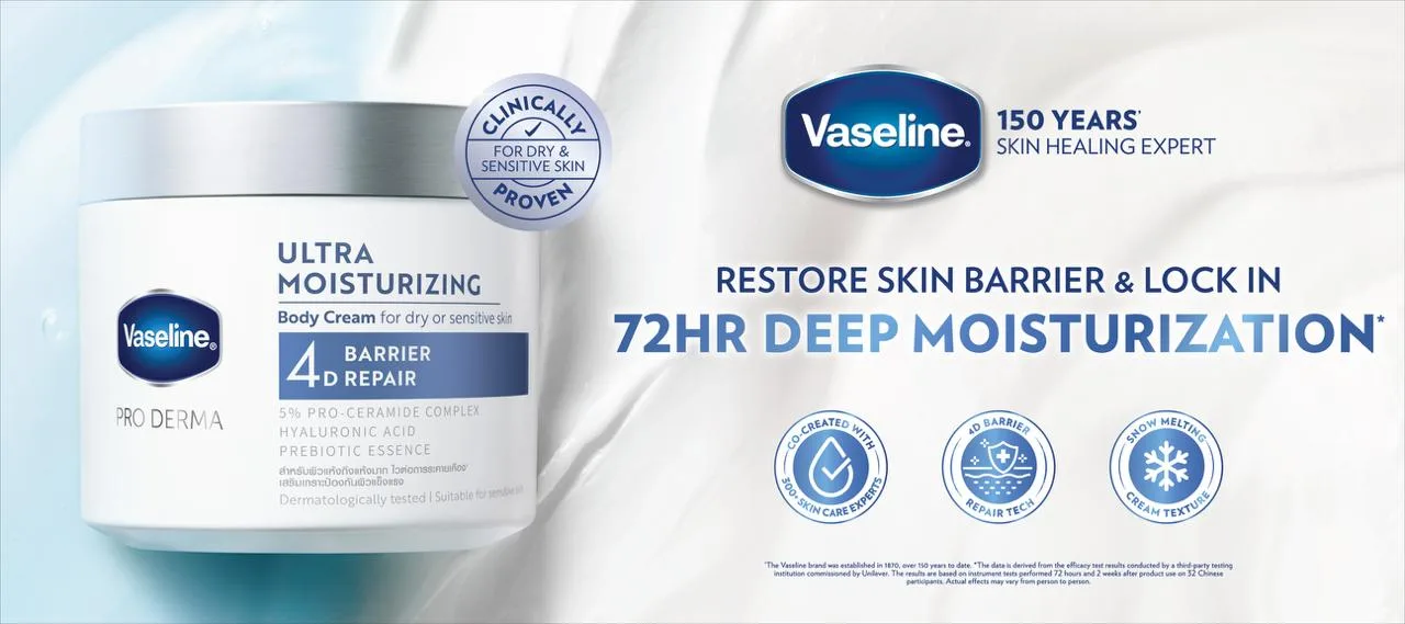 From the iconic Petroleum Jelly that healed generations to its latest breakthrough in skin science, Vaseline continues its legacy of care with a new innovation. The Vaseline Pro Derma Ultra Moisturizing Body Cream is a dermatologically advanced formula made for dry, sensitive, and easily irritated skin.