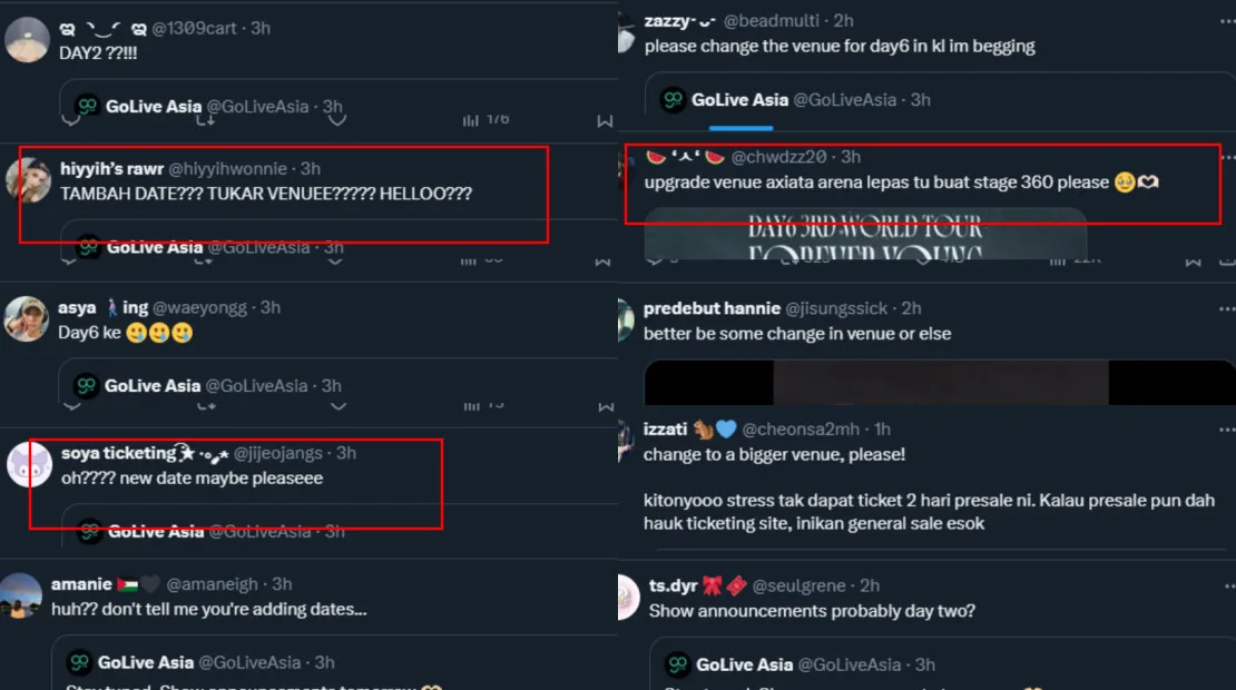 As seen in the screenshots below, countless fans are manifesting that the venue could be upgraded to Axiata Arena. Others are anticipating that the band will perform for 1 more night to give the chance to those who couldn’t manage to purchase the tickets due to the small event space. Some asked if it was possible for the organisers to build a 360° stage so they could live the same concert experience as other fans around the world.