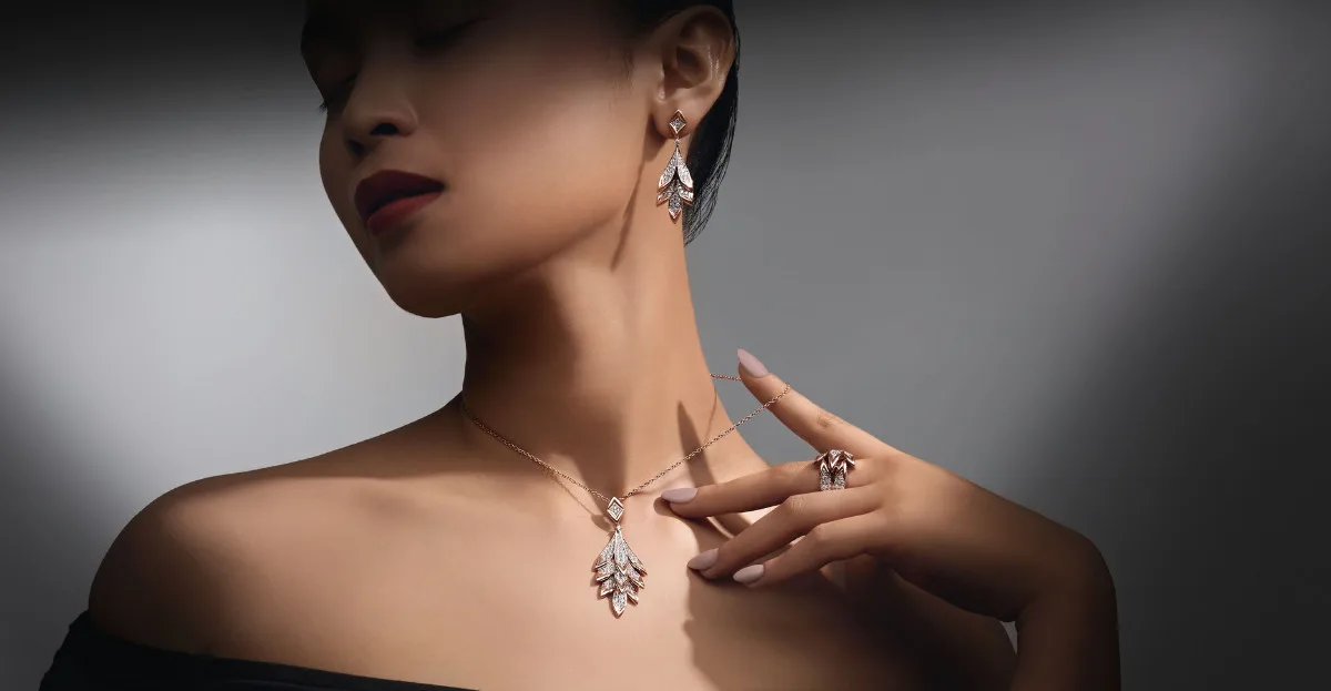Crafted in 18 karat rose gold and adorned with dazzling diamonds, each piece radiates sophistication and charm. This collection is perfect for those who cherish life’s little luxuries, whether making a bold fashion statement or adding daily sparkle. Featuring a trio of elegance – earrings, a mesmerising necklace, and a stunning ring – HABIB’s collection promises unmatched elegance and timeless allure. Step into a world of beauty, grace, and nature’s magic with HABIB.
