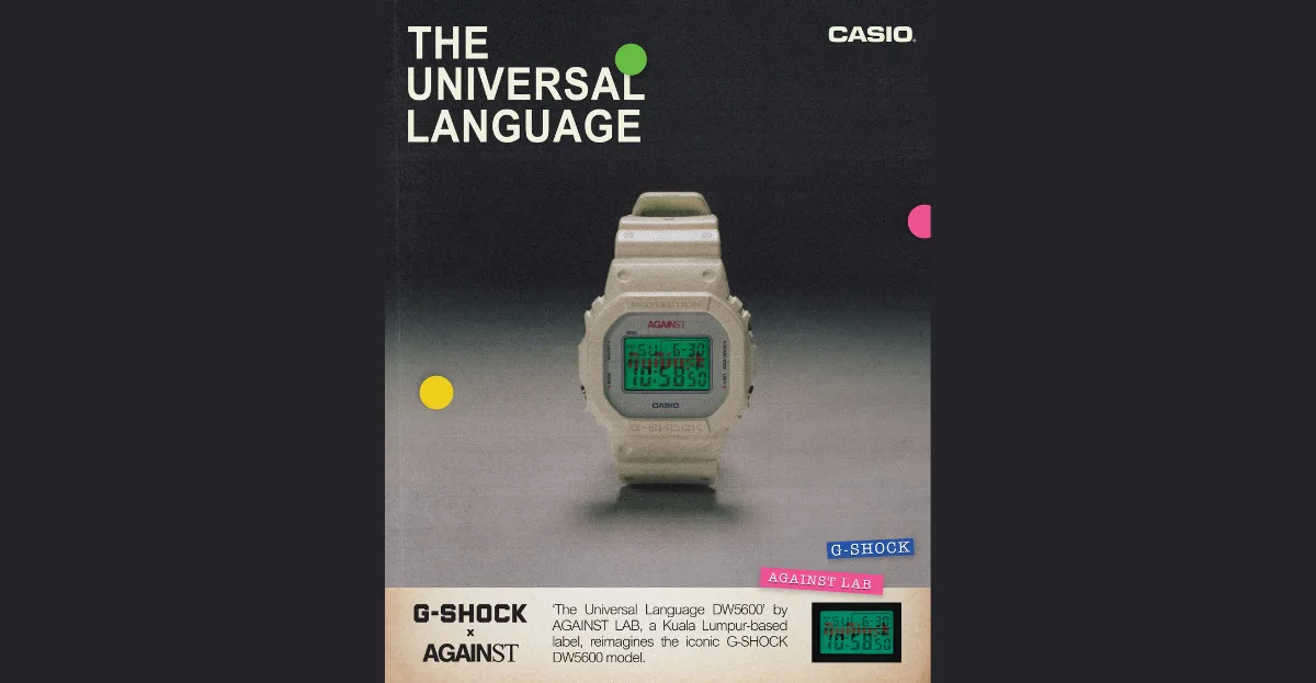 The DW-5600AL24 sports a square face, neon accents on a matte white base, and a soundwave LED backlight. Find it at the “The Universal Language” Pop-up store, CASIO Malaysia’s official site, Lazada, AGAINST LAB. webstore, G-SHOCK stores, select dealers, and Atmos KL for RM595.