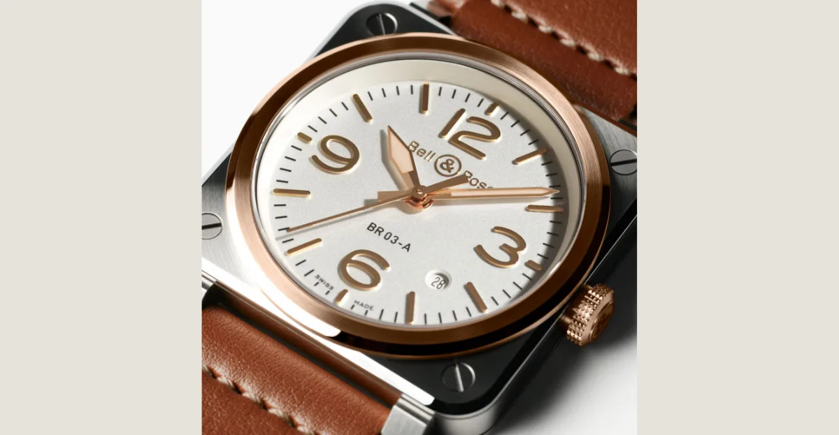The BR 03 White Steel & Gold merges sleek steel with luxurious 18-carat pink gold in a redesigned 41 mm case. This 2023 model offers a sophisticated urban look with the toughness of a professional watch.