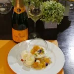 Served with an enjoyable sweet pairing of a citrus gelée and cloud served with the Veuve Clicquot Yellow Label Brut, the pairing highlighted the fresh and citrus assemblage notes in the Yellow Brute Label, keeping the palate fresh and balanced with additional richness and persistence to the fruity citrusy finish.