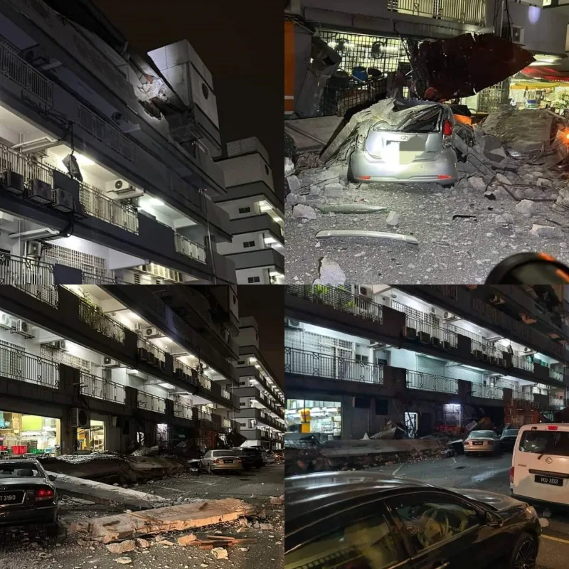 @hypemalaysia A structure of a building’s roof in Kuchai Lama collapsed, destroying 10 vehicles parked below.