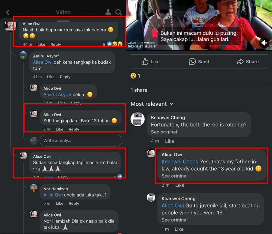 Through Facebook comments, the victim’s daughter-in-law revealed that he is in stable condition and did not sustain any injuries. She also revealed that the 13-year-old boy has been caught by authorities and is currently being detained. However, the woman did not share any additional information regarding the case.