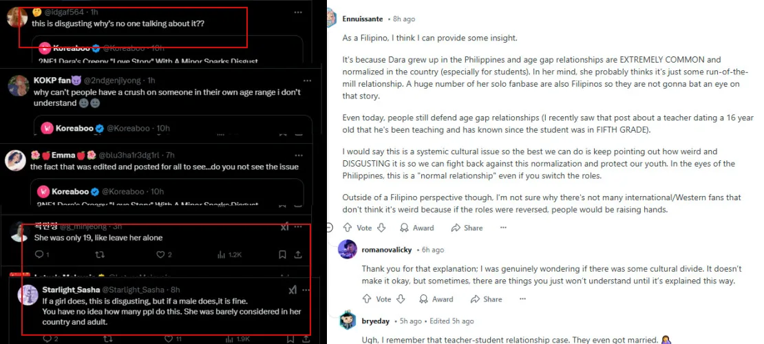 According to one user on Reddit, age-gap relationships are common in the Philippines and locals may not necessarily see it as grooming. However, despite the norm, the user clarified that they believe that it is still inappropriate for an adult to be dating an underage person. At the time of writing, neither Dara nor her agency Abyss Company have issued a statement regarding the viral issue.