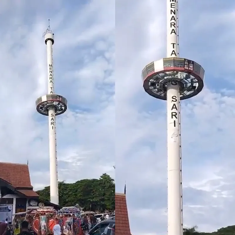 Being stuck inside of a lift can be a terrifying experience but being stuck 60-metres above the ground behind glass windows is a whole new level of terrifying. Imagine how these tourists must’ve felt when the moving vertical platform or observation deck of the famous Taming Sari Tower stopped working.