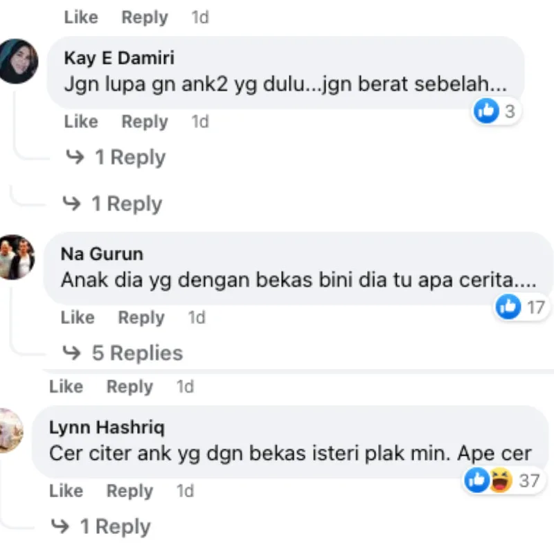 For your information, the 50-year-old actor has 2 other sons with his ex-wife Shafnie Zainuddin. Netizens on Facebook commented if his sons from his previous marriage ever got a Mercedes-Benz or any expensive car brands for that matter when they were growing up.