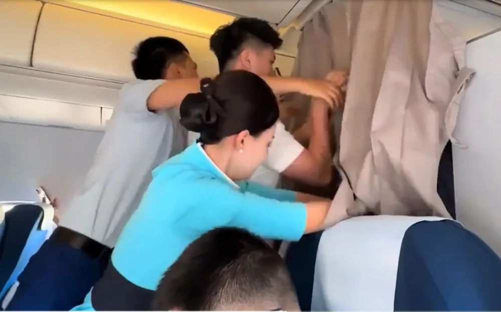 Watch the clip of the cabin crew pushing back fans:
