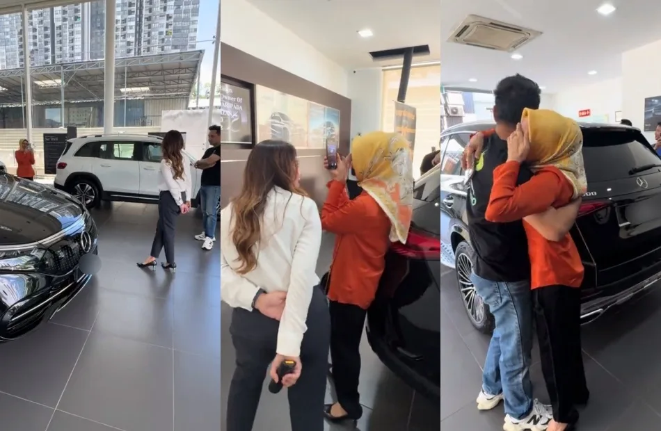 The salesperson, Seri, asked the star’s mother Anai Ibrahim, who was seen admiring the cars in the building, if she was a fan of Mercedes-Benz. Seri then invited the family to get a “preview” of the new GLC300 model while they were there. According to the captions in the video, the model was their mother’s dream car and thankfully, she didn’t suspect anything at that point.