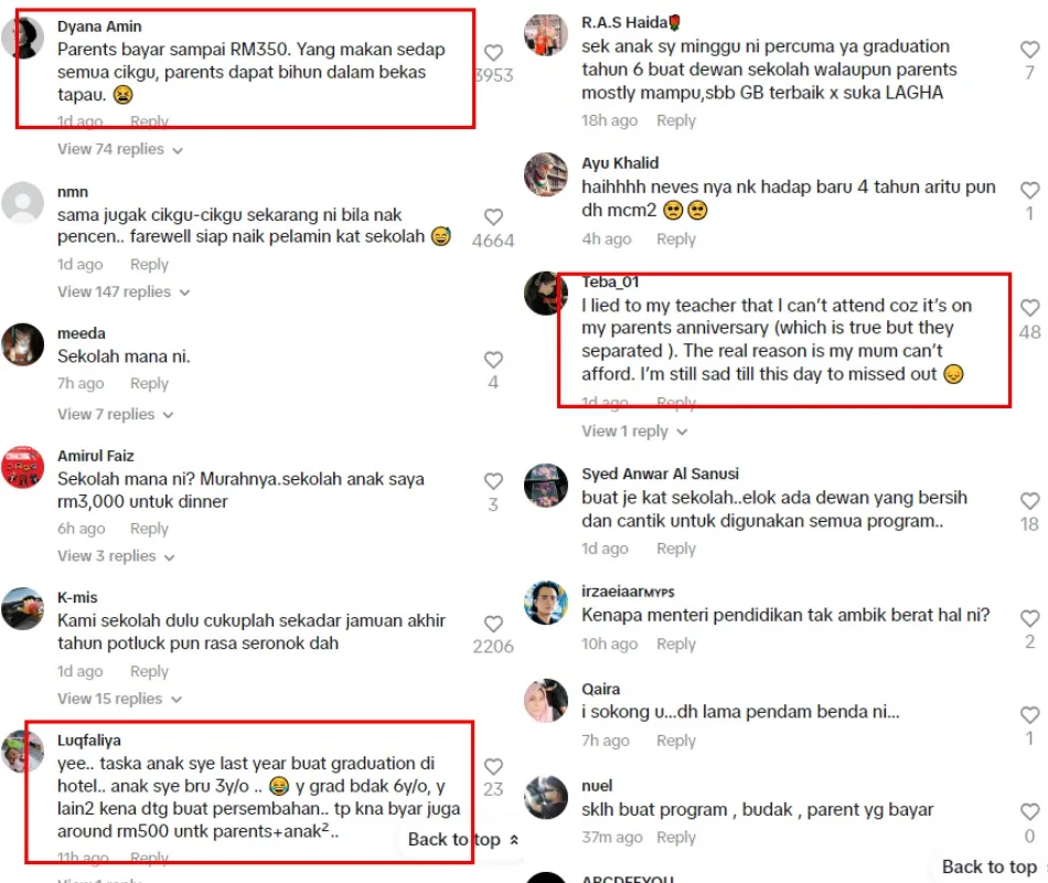 Adrea’s post went viral with many netizens agreeing with her points saying that they too have experienced similar incidents. Many admitted that they had to forgo such events due to financial constraints. Perhaps the Ministry of Education could look into this matter and prevent schools from overspending on unnecessary venues for events.