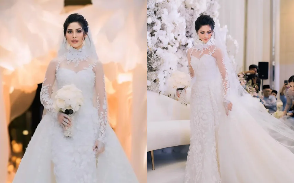 According to the celeb, the dress she wore for her wedding was designed by Lebanese fashion designer Zuhair Murad. The dress had floral motifs with intricate lace detailing and embroidery. However, the dress is quite sheer in some parts, notably the sleeves and bodice. The public figure admitted that the dress cost her a fortune but said it was her dream to wear the designer’s work for her big day. After sharing photos of herself in her dream dress, many fans showered the Afifah in praise for her beauty and elegance.