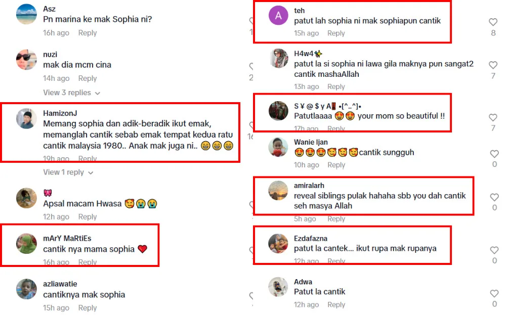 The TikTok video has since gone viral, with many comments praising Marina’s beauty. Many also said they can see where Sophia gets her good looks from, noting similarities in mother and daughter’s features. However, the “From Saga With Love” star lamented, “I didn’t inherit her beautiful smile and really nice teeth”. Regardless, the 31-year-old is undeniably proud of her mother, including the hashtags “#/beautifulmum” and “#/missmalaysia” in her captions.