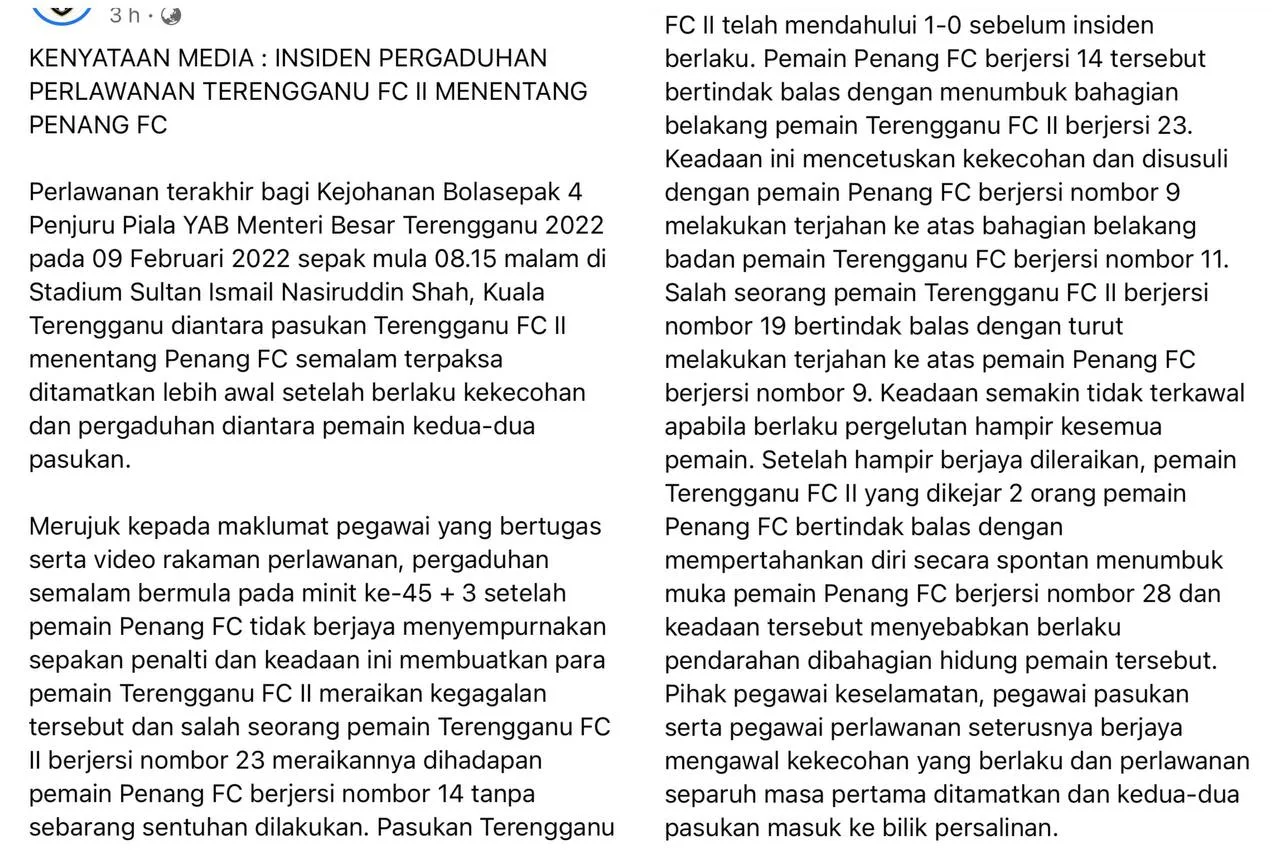 If you’re not aware of what is happening in the Malaysian sports’ industry, last night (9th February), the final round of 2022 4-Cornered Football Championship had taken place in one of the final contenders’ home ground, Kuala Terengganu. Terengganu FC II (TFC) was going against Penang FC for the 2022 YAB Terengganu’s Chief Minister’s cup.