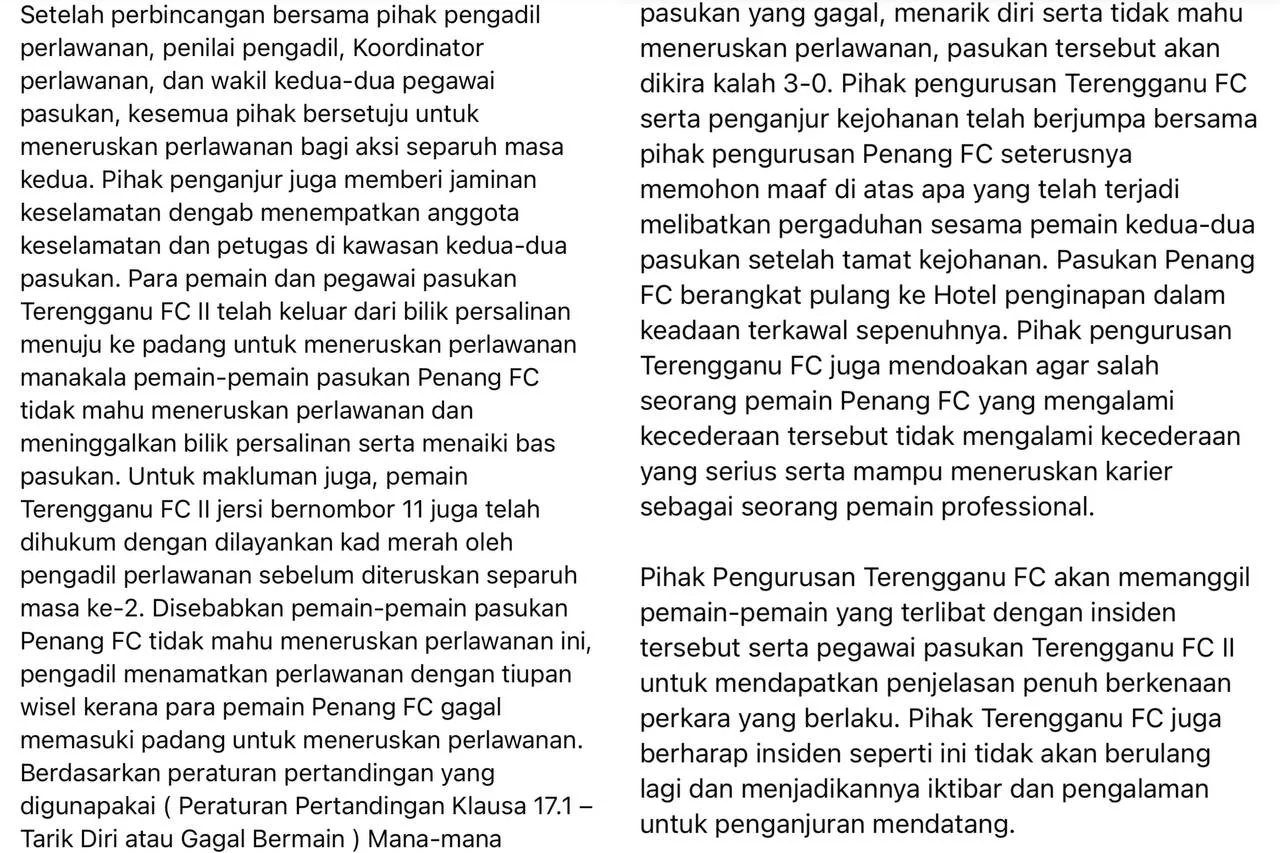 TFC’s management team has released an official media statement through their official Facebook page regarding the issue. They have also met up with the management team of Penang FC to issue an apology. Other than that, they hoped that the injury sustained by one of the Penang FC’s players isn’t serious and they hope for him to keep on playing professionally.