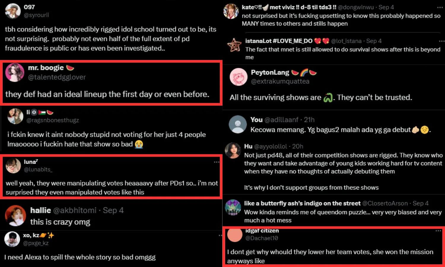 After the revelations came to light, it naturally sparked outrage among K-pop fans. Many comments expressed anger over how the entire show was rigged and planned out from the very beginning, causing disappointment and frustration among viewers. Others wondered what the final lineup of IZ*ONE (아이즈원) might have looked like if the voting had been fair, which further raised doubts about the show’s trustworthiness.