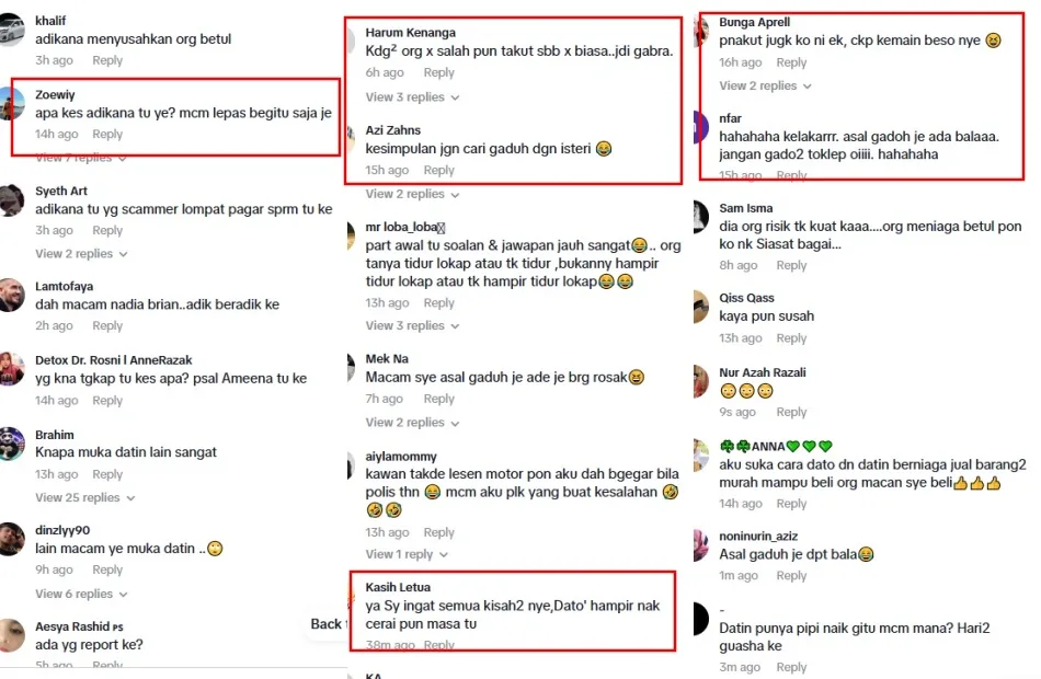 Netizens were mostly amused by how easy Aliff becomes terrified whenever authorities are involved. It’s ironic given the number of times he has threatened to sue someone. Others were genuinely curious about whether those cases had been resolved. According to several reports, the child abuse case was resolved on the same day Aliff Syukri was taken into custody. As for the MACC raid, it’s possible that the couple was referring to the Macau Scam allegations, in which they have denied their involvement.