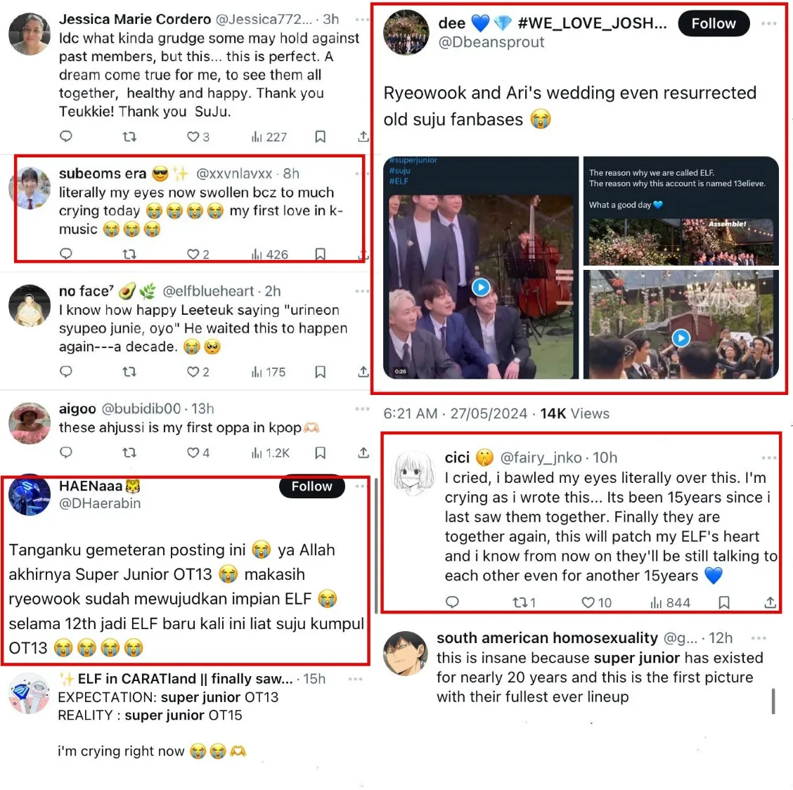 Surely, the reunion as well as the performance created a sense of nostalgia among fans on the internet, with several fans finding it difficult to comprehend that the reunion was real. A few netizens also felt emotional upon seeing the members together, with one account even pointed out that the wedding resurrected old Super Junior fan clubs.