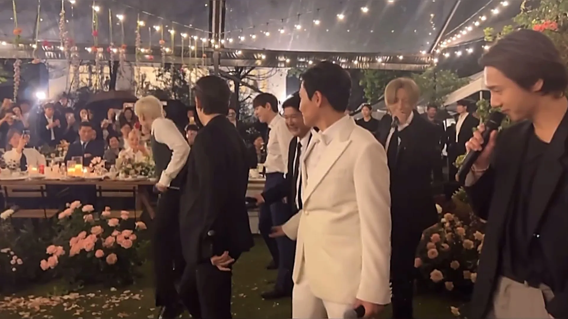 The wedding itself was nothing short of a romantic affair as S.E.S. (에스이에스) member, Bada (바다) graced the evening with a sweet song. Yet, with all members of the group present, the ceremony turned into a fun and memorable one when Super Junior performed their iconic hit, “Sorry Sorry” which had the bride and the wedding guests entertained as they cheered them on.