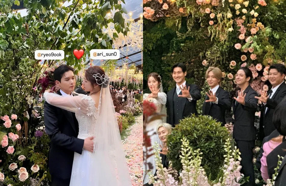 It is known that Ryeowook (려욱) of Super Junior (슈퍼주니어) finally tied the knot with former TAHITI (타히티) member, Ari (아리) in a dreamy, fairytale-esque wedding yesterday (Sunday, 26th May 2024). The ceremony was attended by close family and friends including S.E.S.’ Bada and the complete members of Super Junior’s original lineup, which sent fans online into a frenzy.