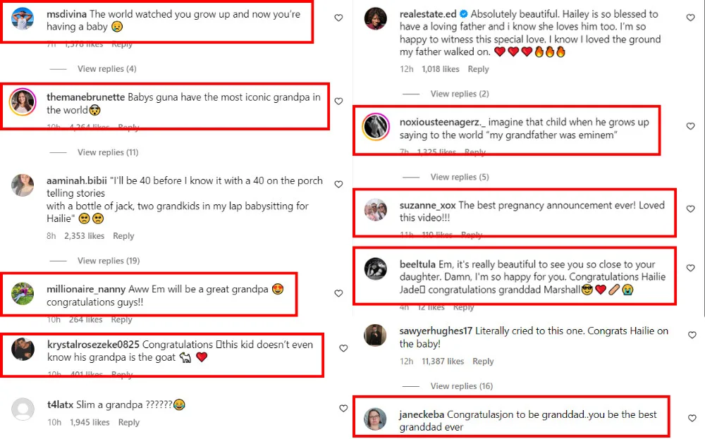 Fans were delighted by the news and congratulated Hailie on her first pregnancy. Fans also congratulated Eminem on becoming a grandfather, saying they can’t wait to see him with his first grandchild. Many long-time Eminem fans also got emotional over the music video and the baby news, as most have witnessed Hailie growing up through her father’s career. Some also said the song and music video showed the love the father-daughter duo had for each other.